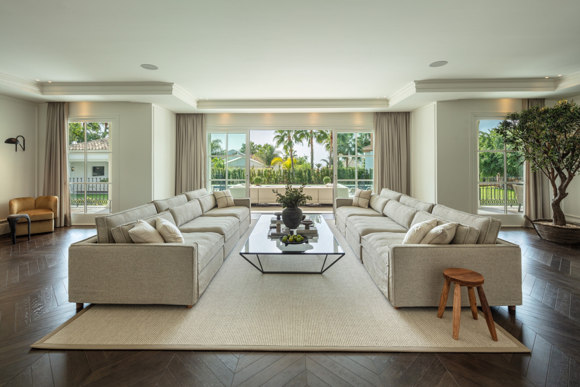 Distribuida en tres niveles, la propiedad cuenta con 6 dormitorios, suite principal con terraza, y espacios de ocio y bienestar que incluyen gimnasio, sala de juegos, sauna y garaje para varios coches. Rodeada de jardines tropicales, un cenador y piscina estilo laguna, esta residencia representa una de las direcciones más exclusivas de Sierra Blanca.