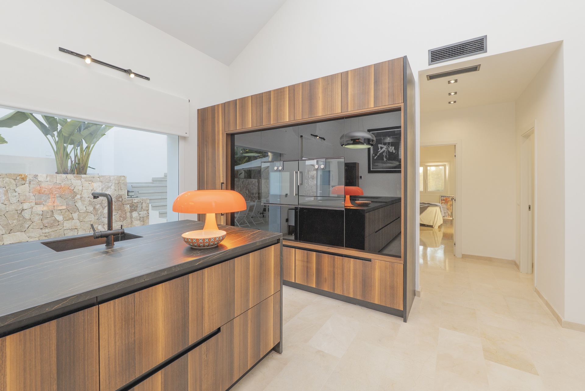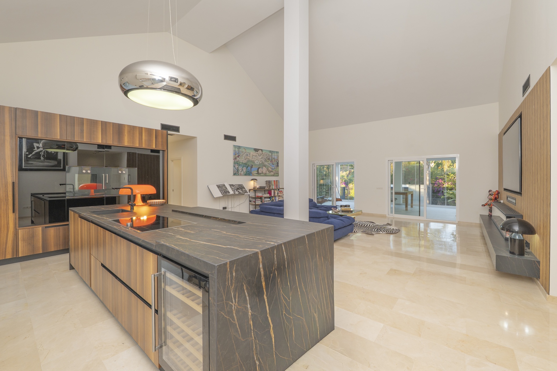 El hall de entrada conduce a un amplio salón inundado de luz natural, presidido por una chimenea eléctrica de diseño, y conectado a una cocina abierta de alta gama, donde cada detalle ha sido cuidadosamente seleccionado.